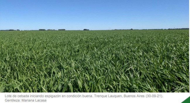 En paralelo, en la región Norte de La Pampa – Oeste de Buenos Aires, luego de registrar lluvias durante la primera quincena de septiembre, se informan aplicaciones de fungicidas para el tratamiento de roya anaranjada y amarilla, mientras los cuadros inician espigazón.