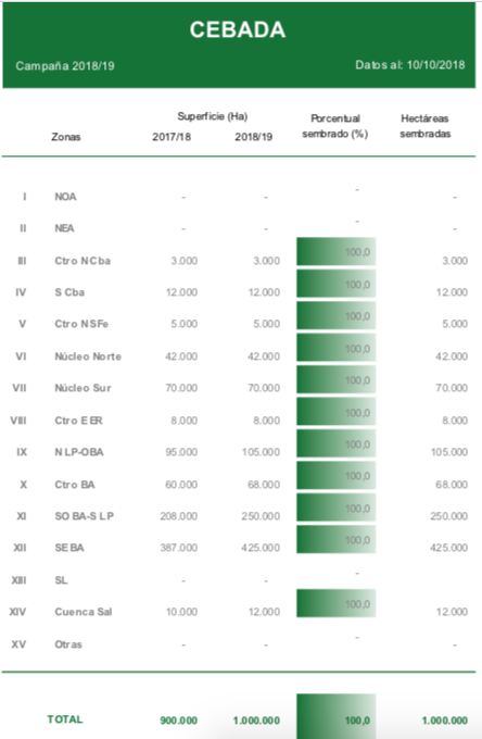 De todas maneras, y a pesar de los eventos climáticos transcurridos, una gran proporción del área cebadera mantiene una buena condición de cultivo, principalmente en sectores del sudeste y sudoeste de la provincia de Buenos Aires, donde se concentra la mayor proporciónde las 1.000.000 de hectáreas implantadas durante la presente campaña.