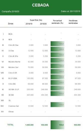 Cebada: toda la superficie se encuentra llenando granos, las labores se iniciarán las próximas semanas