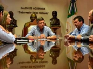 Autoridades de la Cámara Argentino Emiratí de Comercio, Industria, Servicios y Transferencia de Tecnología (CARAE), se reunieron con el gobernador Domingo Peppo y con el ministro de producción Marcelo Repetto, para analizar la posible exportación de productos locales a los emiratos Arabes.