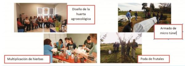 Otros temas desarrollados fueron la producción de lombri-compuesto a nivel familiar, uso de abonos verdes, mantillos, control de plagas y malezas, siembra en almácigos y siembra directa, rotaciones y asociaciones de cultivos, armado de microtunel, producción de semillas, riego por goteo y manejo y poda de las plantas de frutales integrada en la huerta familiar.