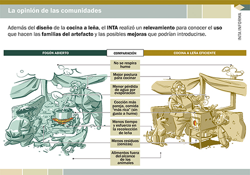 A partir del diseño de encuestas previstas por el equipo del INTA, se conoció que el 76 % de la población ya utiliza la cocina a leña –en general, instalada fuera de la casa–.