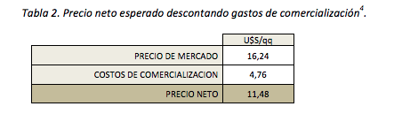 1 Fuente: Cooperativa Sombra de Toro Ltda. (Cabildo, Buenos Aires) 2 Cotización del dólar: $18,76 (valor promedio desde el 1 al 19 de enero de 2018). No se han considerado los costos de arrendamiento