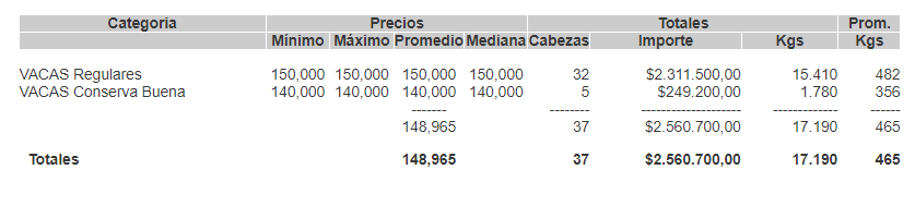 PRECIOS DEFINITIVOS POR CATEGORIA PARA EL LUNES 1/11/2021
