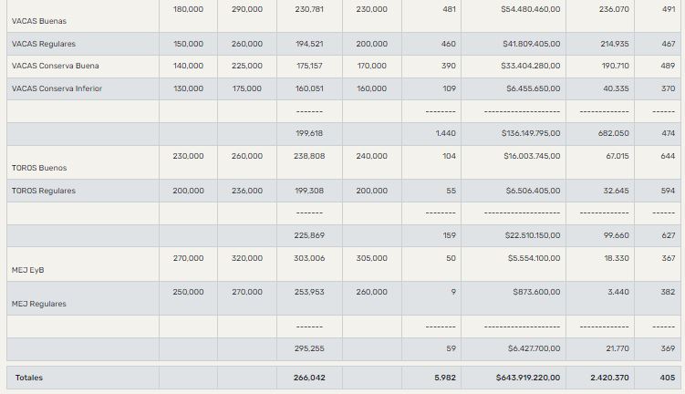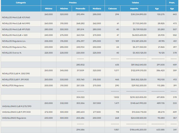 PRECIOS POR CATEGORIA PARA EL MARTES 01/11/2022