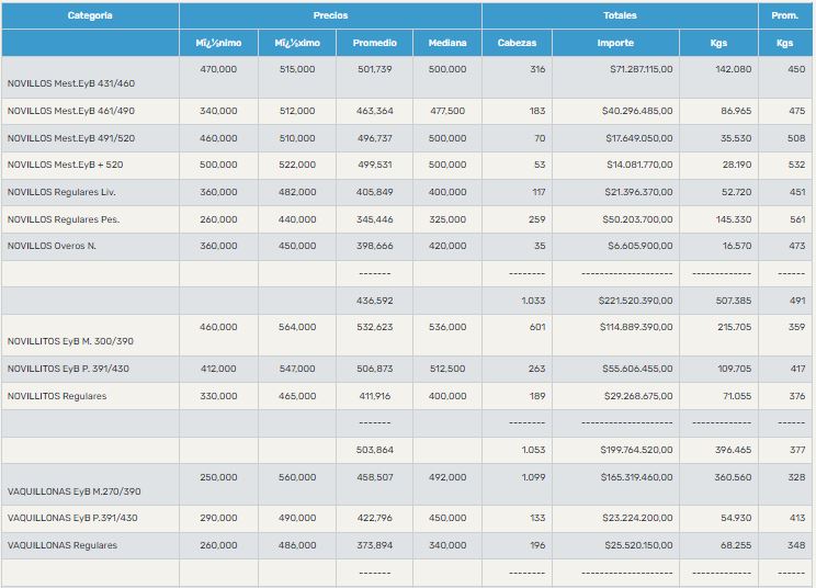 PRECIOS POR CATEGORIA PARA EL MIÉRCOLES 10/05/2023
