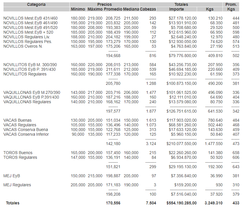 GanaderíaCierre de mercado de hacienda el 10 de noviembre 10 de noviembre de 2021FacebookTwitterWhatsAppTelegramEmailImpresión MERCADO DE LINIERSPECIOS DEFINITIVOS POR CATEGORIA PARA EL MIÉRCOLES 10/11/2021Lee másPronóstico climático trimestral MÁS INFO PARA TU CAMPO ENTRÁ AQUí