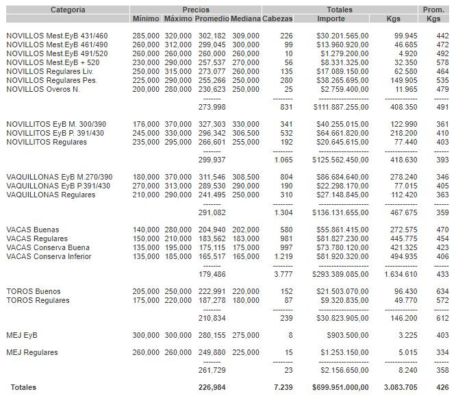 GanaderíaCierre de mercado de hacienda el 11 de mayo 11 de mayo de 2022FacebookTwitterWhatsAppTelegramEmailImpresión Mercado de LiniersPrecios definitivos por categoría para el 11 de mayo de 2022Lee tambiénPronóstico de lluvias hasta el 21 de mayoLos rusos están robando de Ucrania gran cantidad de granos y maquinaria agrícola, incluyendo tractores y cosechadorasPronóstico climático trimestral para mayo, junio y julio 2022 Fuente: Mercado de Liniers SAMÁS INFO PARA TU CAMPO ENTRÁ AQUÍ