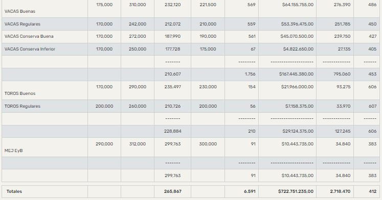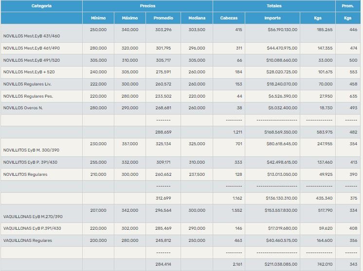 PRECIOS DEFINITIVOS POR CATEGORIA EL MARTES 11 DE OCTUBRE