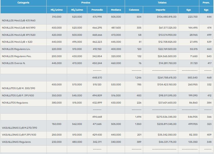 PRECIOS POR CATEGORIA PARA EL VIERNES 12/05/2023