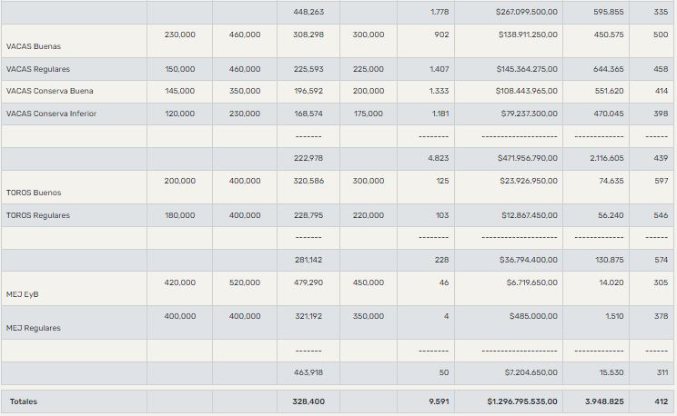 GanaderíaCierre de mercado de hacienda el 13 de junio 13 de junio de 2023FacebookTwitterWhatsAppTelegramEmailImpresión PRECIOS POR CATEGORIA PARA EL MARTES 13/06/2023MERCADO AGROGANADEROLee tambiénPronóstico climático favorable para el trimestre junio, julio y agosto 2023Mayo dejó buenas lluvias en algunas zonas, pero en el 50% de la Región Pampeana aún falta aguaA las lluvias, la baja de los fertilizantes suma otra buena noticia para la siembra finaGranos: desafíos y perspectivas para la campaña que se viene ¿Cómo mantener bajo control las malezas en trigo?Fuente: Mercado AgroganaderoMÁS INFO PARA TU CAMPO ENTRA AQUÍ