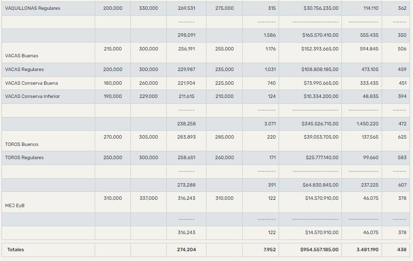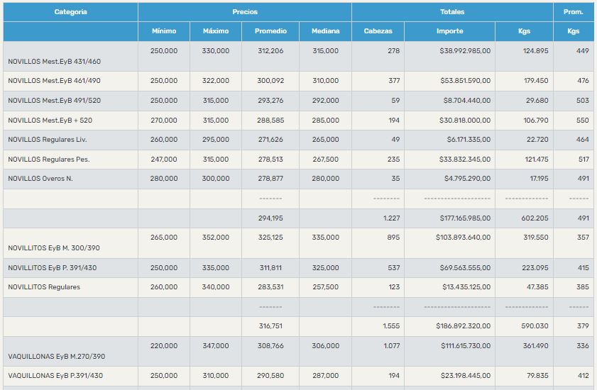 PRECIOS DEFINITIVOS POR CATEGORIA PARA EL MARTES 13 DE SEPTIEMBRE