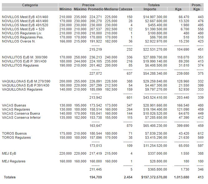PRECIOS DEFINITIVOS POR CATEGORIA PARA EL VIERNES 14/01/2022