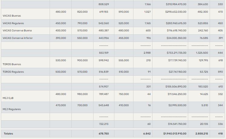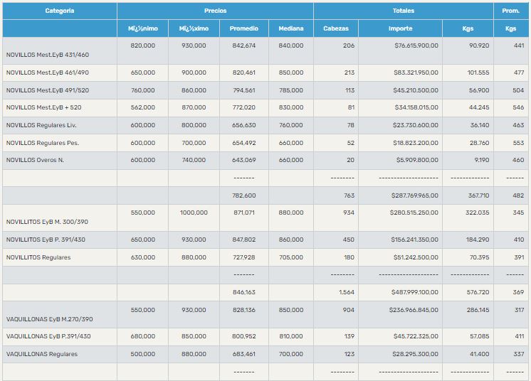 PRECIOS POR CATEGORIA PARA EL MARTES 15/08/2023