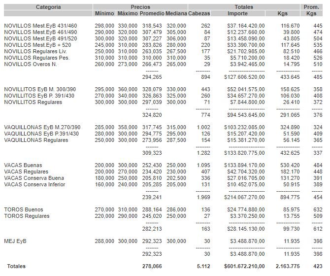 PRECIOS DEFINITIVOS POR CATEGORIA EL MARTES 16 DE AGOSTO