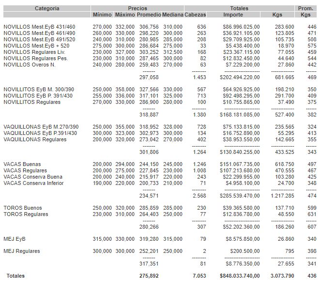 PRECIOS DEFINITIVOS POR CATEGORIA EL VIERNES 19 DE AGOSTO
