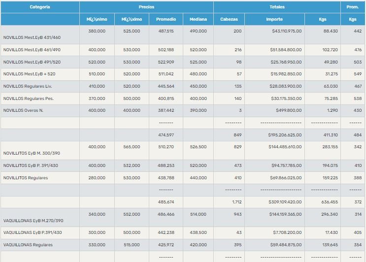 PRECIOS POR CATEGORIA DESDE EL MIÉRCOLES 19/07/2023