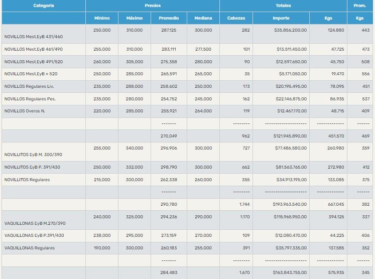 PRECIOS POR CATEGORIA PARA EL MÍÉRCOLES 02/11/2022