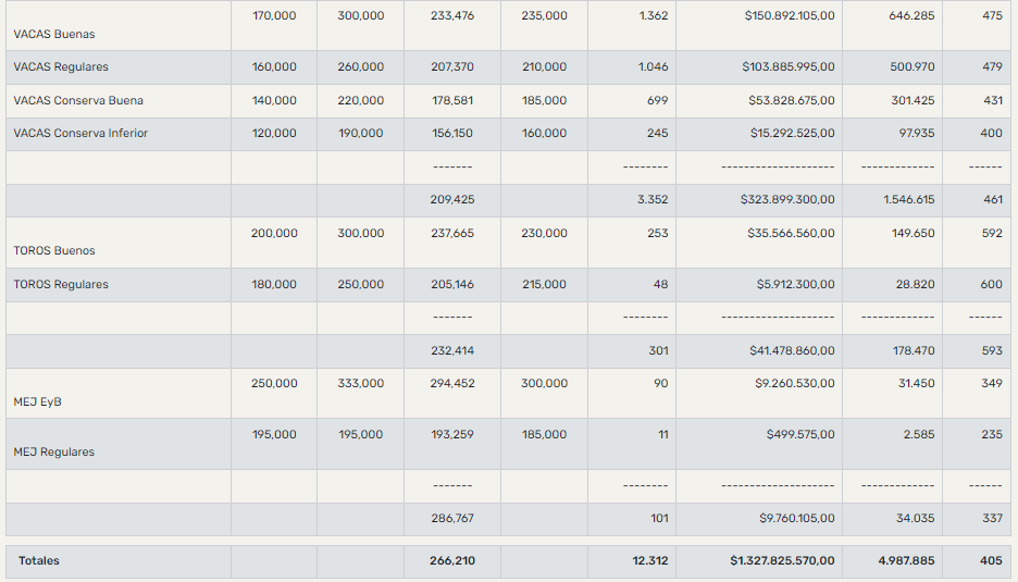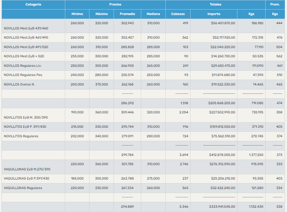 PRECIOS DEFINITIVOS POR CATEGORIA EL MARTES 20/12/2022