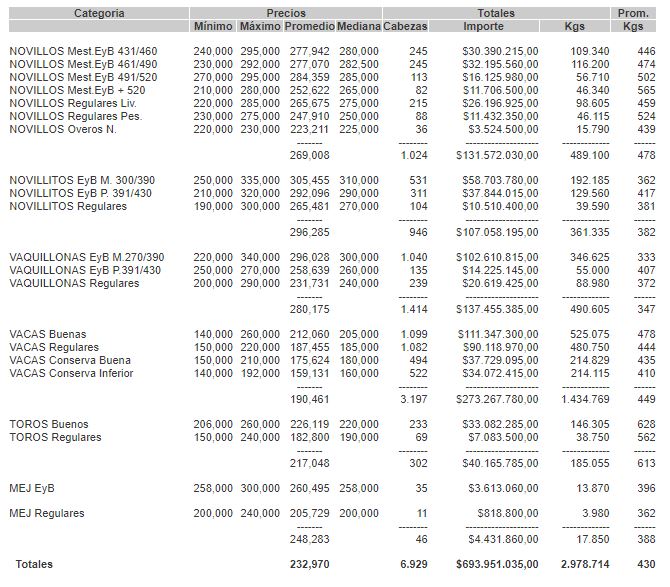 Precios por categoría en el Mercado de Hacienda el 20 de julio