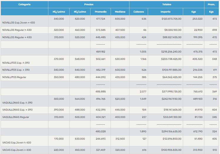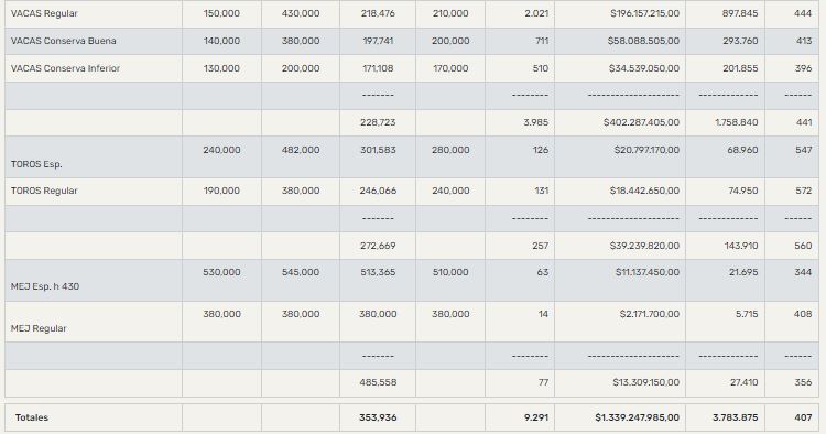 GanaderíaCierre de mercado de hacienda el 21 de junio 21 de junio de 2023FacebookTwitterWhatsAppTelegramEmailImpresión PRECIOS POR CATEGORÍA PARA EL MIÉRCOLES 21/06/2023MERCADO AGRO GANADEROLee tambiénPronóstico climático favorable para el trimestre junio, julio y agosto 2023Mayo dejó buenas lluvias en algunas zonas, pero en el 50% de la Región Pampeana aún falta aguaA las lluvias, la baja de los fertilizantes suma otra buena noticia para la siembra finaGranos: desafíos y perspectivas para la campaña que se viene ¿Cómo mantener bajo control las malezas en trigo?Fuente: Mercado AgroganaderoMÁS INFO PARA TU CAMPO ENTRA AQUÍ