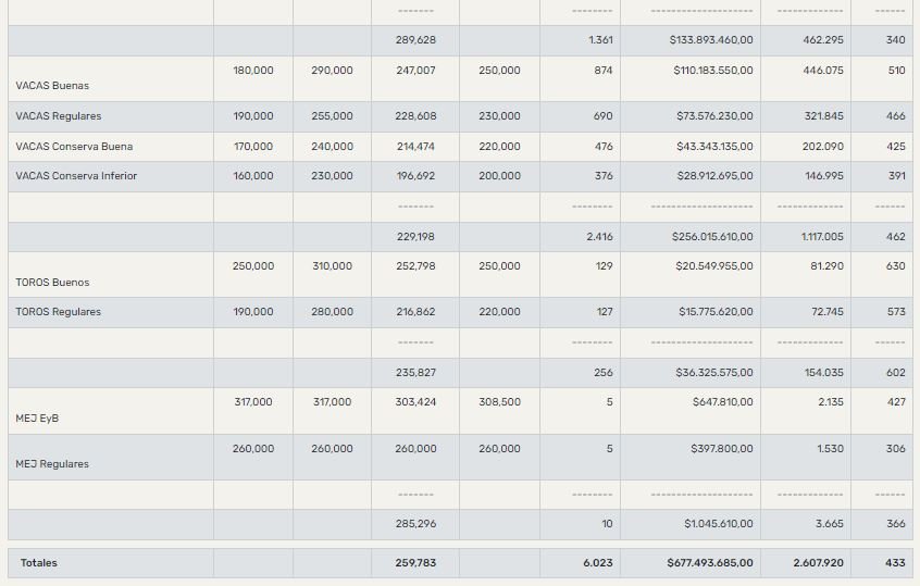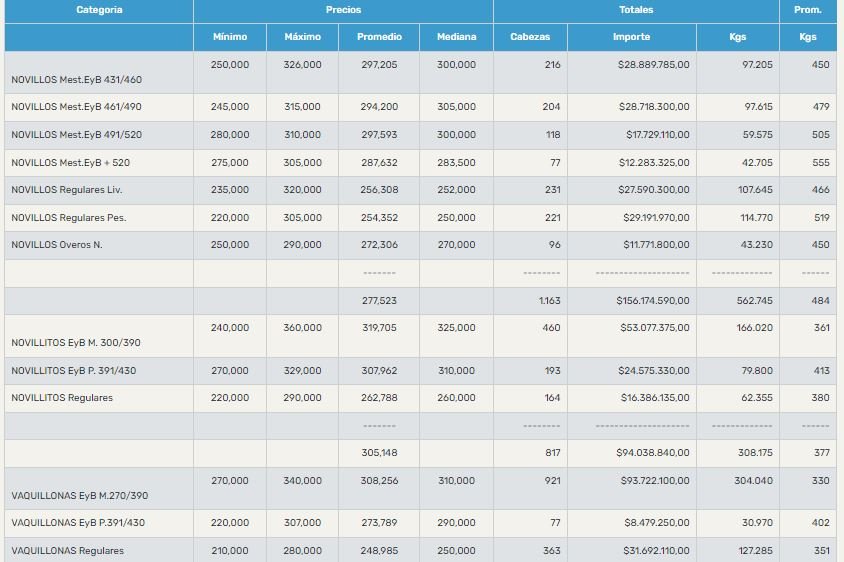 PRECIOS DEFINITIVOS POR CATEGORÍA PARA EL MIÉRCOLES 21 DE SEPTIEMBRE