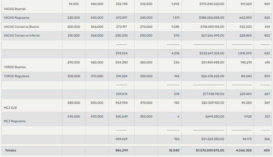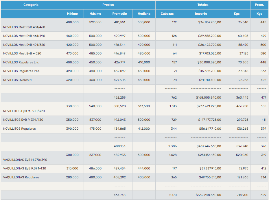 PRECIOS POR CATEGORIA PARA EL MIÉRCOLES 22/02/2023