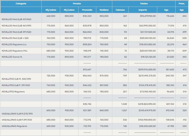 PRECIOS POR CATEGORIA DESDE EL MIÉRCOLES 23/08/2023