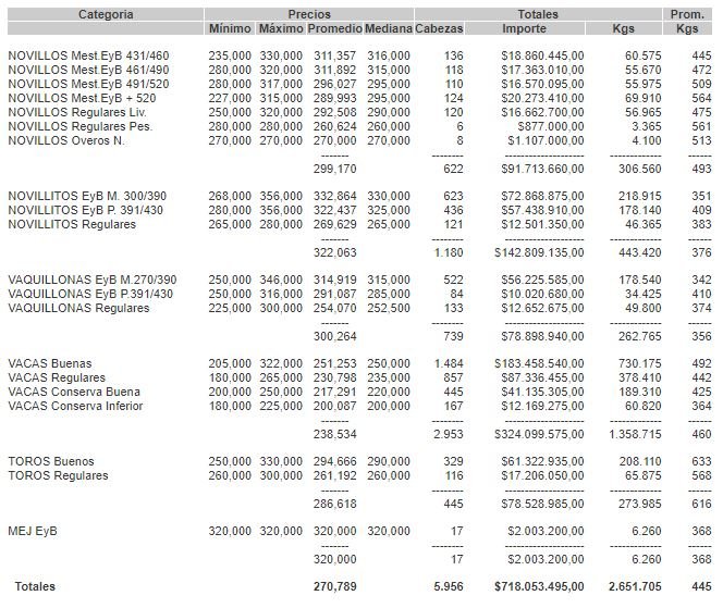 PRECIOS DEFINITIVOS POR CATEGORIA EL MIÉRCOLES 24 DE AGOSTO