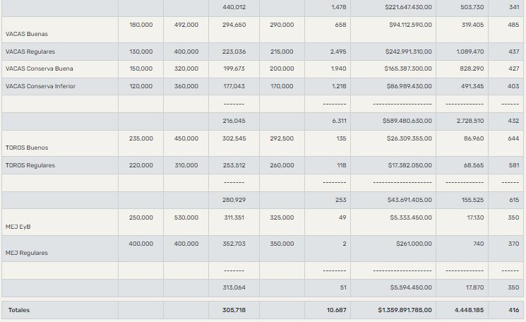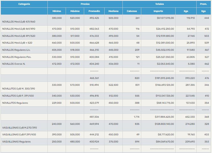 PRECIOS POR CATEGORIA PARA EL MARTES 25/04/2023