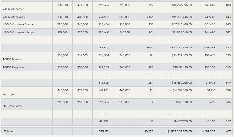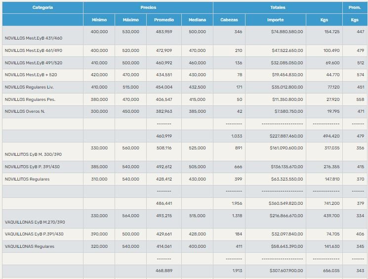 PRECIOS POR CATEGORIA PARA EL MARTES 28/02/2023