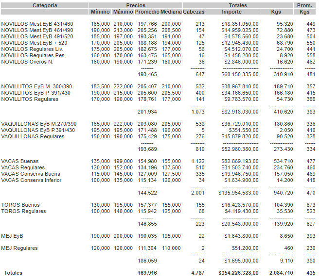 PRECIOS DEFINITIVOS POR CATEGORIA PARA EL MIÉRCOLES 3/11/2021