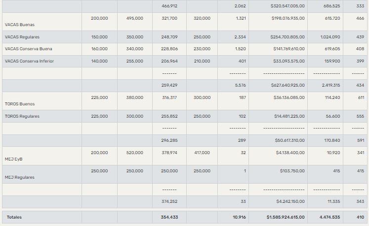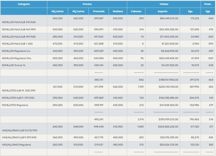 PRECIOS POR CATEGORIA PARA EL MARTES 30/05/2023