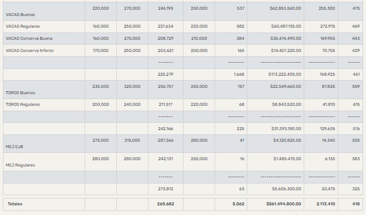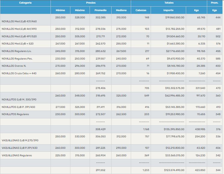 PRECIOS DEFINITIVOS POR CATEGORIA EL VIERNES 30/09/2022