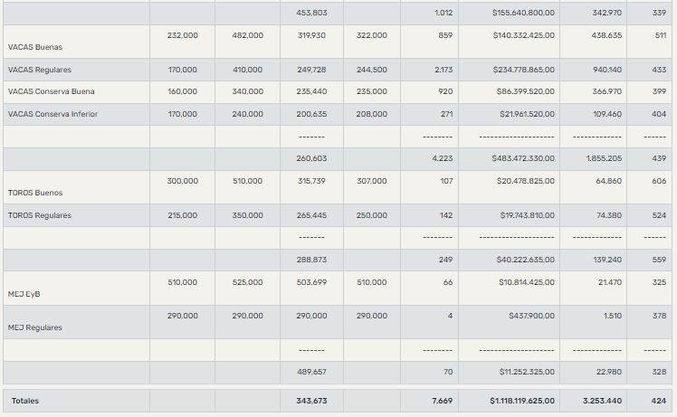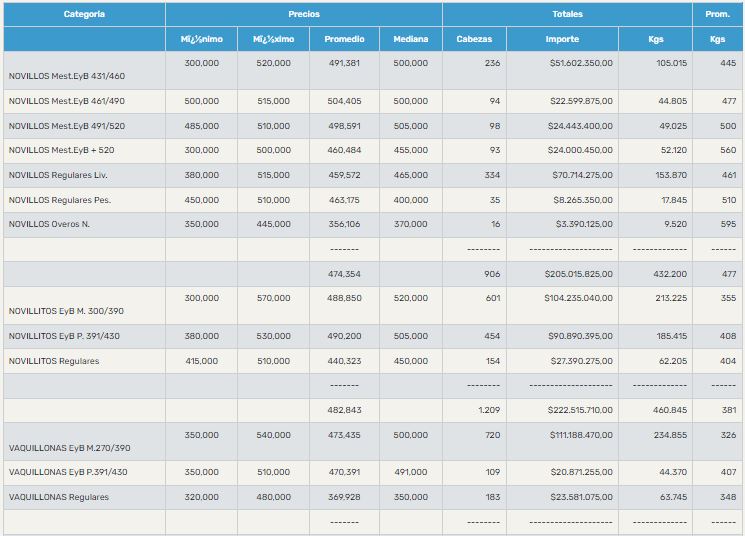 PRECIOS POR CATEGORIA PARA EL MIÉRCOLES 31/05/2023