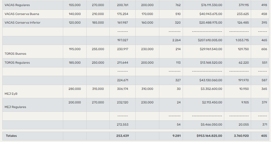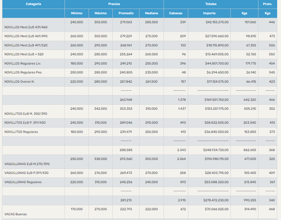 PRECIOS DEFINITIVOS POR CATEGORIA PARA EL VIERNES 04/11/2022
