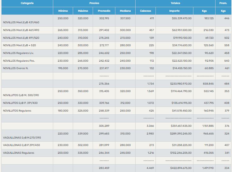 PRECIOS DEFINITIVOS POR CATEGORIA EL MARTES 6/12/2022