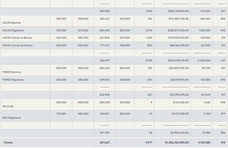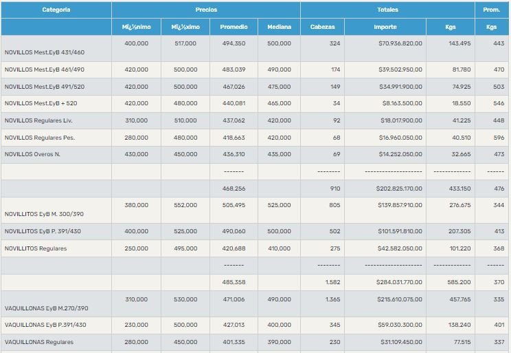 GanaderíaCierre de mercado de hacienda el 7 de junio 7 de junio de 2023FacebookTwitterWhatsAppTelegramEmailImpresión PRECIOS POR CATEGORIA PARA EL MIÉRCOLES 07/06/2023MERCADO AGROGANADEROLee tambiénPronóstico climático favorable para el trimestre junio, julio y agosto 2023Mayo dejó buenas lluvias en algunas zonas, pero en el 50% de la Región Pampeana aún falta aguaA las lluvias, la baja de los fertilizantes suma otra buena noticia para la siembra finaGranos: desafíos y perspectivas para la campaña que se viene ¿Cómo mantener bajo control las malezas en trigo?Fuente: Mercado AgroganaderoMÁS INFO PARA TU CAMPO ENTRA AQUÍ