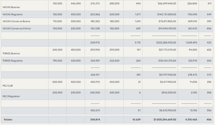 PRECIOS POR CATEGORÍA PARA EL MARTES 07/03/2023