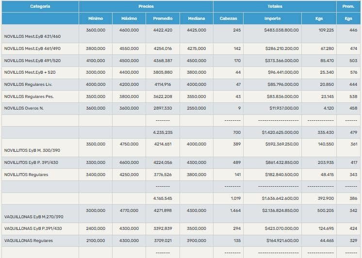 PRECIOS POR CATEGORIA DESDE EL VIERNES 16/01/2026