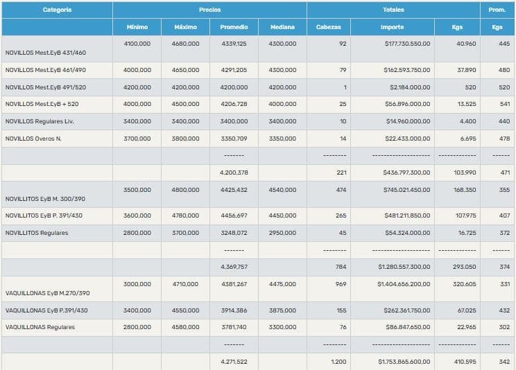 PRECIOS POR CATEGORIA DESDE EL MARTES 23/12/2025
