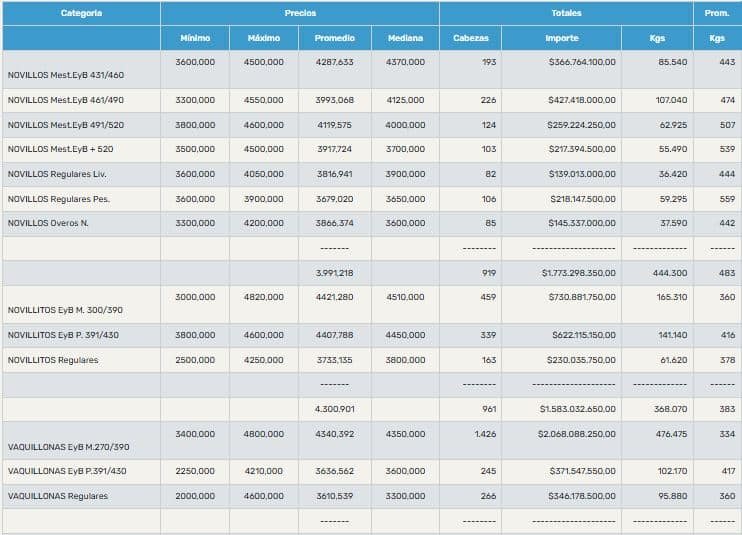 PRECIOS POR CATEGORIA DESDE EL VIERNES 23/01/2026