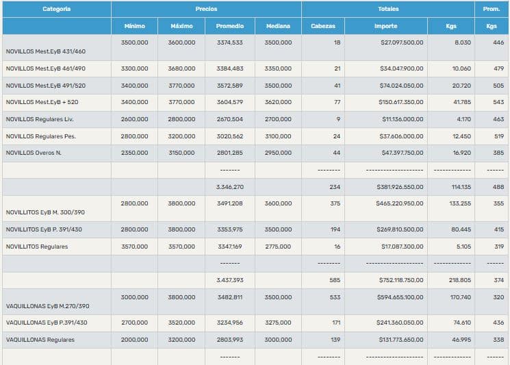 PRECIOS POR CATEGORÍA DESDE EL VIERNES 24/10/2025