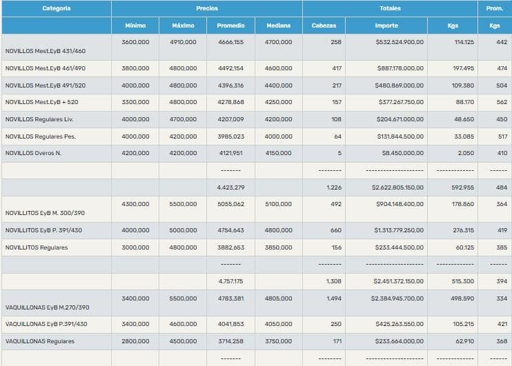 PRECIOS POR CATEGORIA DESDE EL MIÉRCOLES 25/03/2026