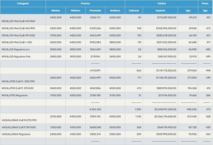 PRECIOS POR CATEGORÍA DESDE EL MARTES 25/11/2025