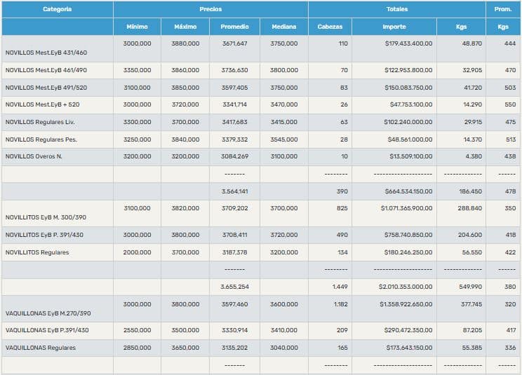 PRECIOS POR CATEGORÍA DESDE EL MARTES 28/10/2025