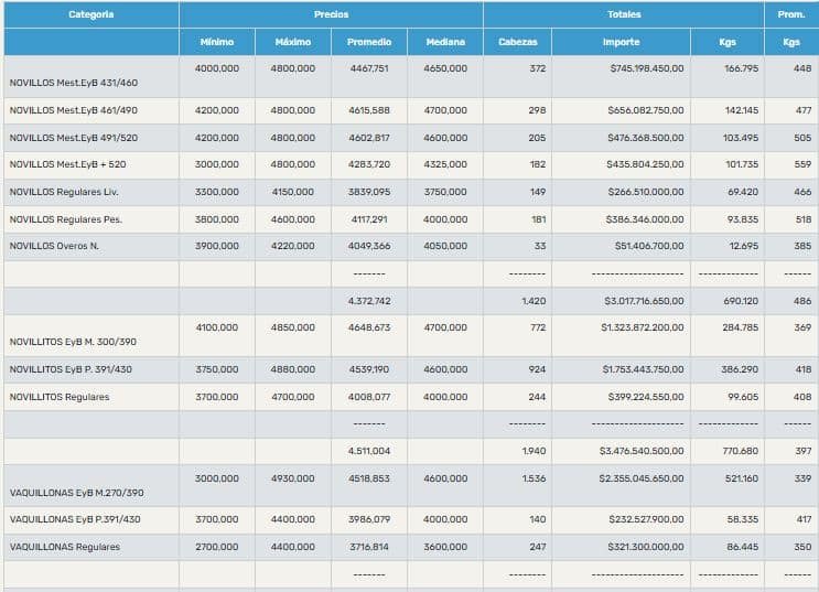 PRECIOS POR CATEGORIA DESDE EL MARTES 03/02/2026