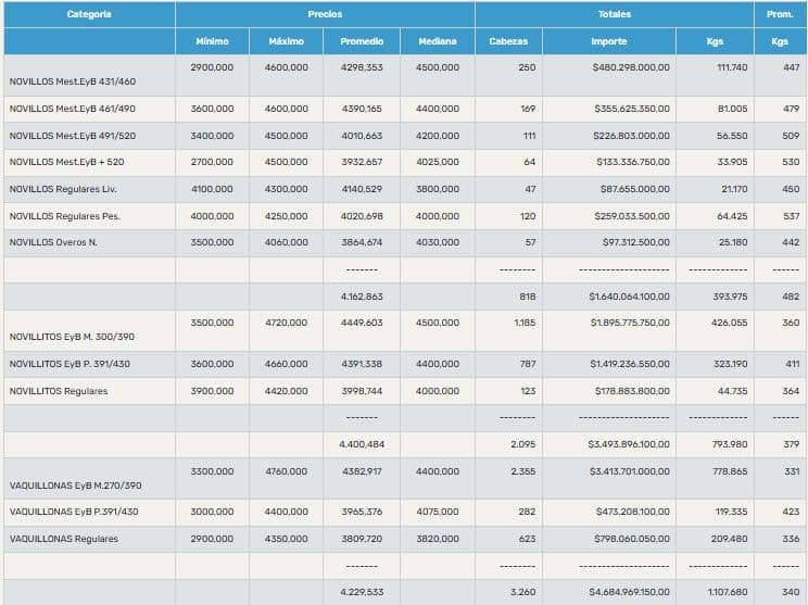 PRECIOS POR CATEGORIA DESDE EL MARTES 30/12/2025