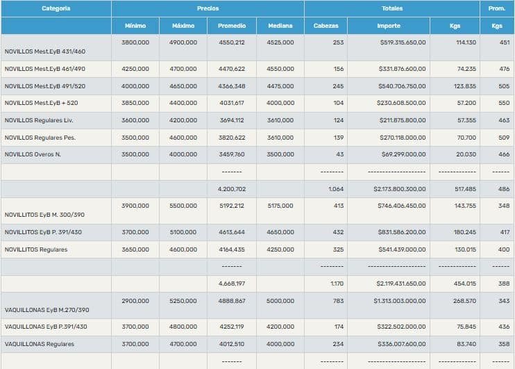 PRECIOS POR CATEGORIA DESDE EL MARTES 07/04/2026