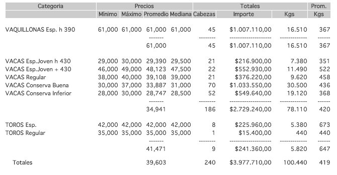 MercadosCierre mercado de hacienda 10 de junio de 2019FacebookTwitterWhatsAppTelegramEmailImpresión PRECIOS POR CATEGORIA RESOL-2018-32-APN-SGA#MPYT DESDE EL LUNES 10/06/2019 AL LUNES 10/06/2019PRECIOS DEFINITIVOSMás información agropecuaria cliqueá aquí